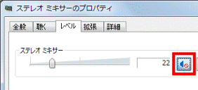 つまみを左に動かすと、録音する音量が減ります。 - スピーカーアイコンに、赤い円の中に斜め線のマークが表示されている場合は、クリックしてミュート(消音)を解除します。