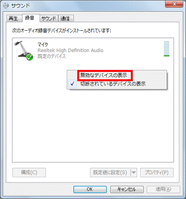 「ステレオミキサー」を右クリックし、表示されるメニューから「有効」をクリックします。