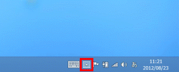 - 通知領域の左端にある「▲」ボタンをクリックまたはタップします。