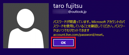 [Windows 8.1/8] Microsoft アカウントに切り替えるときに「Microsoft サービスに接続できませんでした」と表示されます。 - 「パスワードが間違っています。」と表示される場合