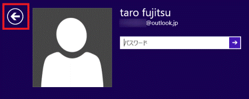 サインインの画面から、別のユーザーアカウントに切り替えるには、「←」をクリックします。