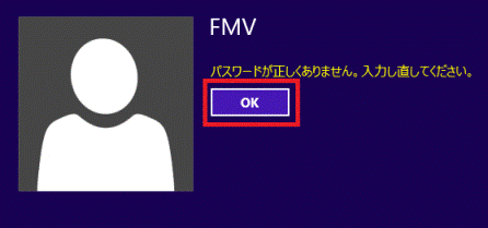- 「パスワードが正しくありません。」と表示されたら「OK」ボタンをクリックします。