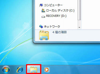 - タスクバーのアイコンをクリックして、エクスプローラーを起動します。