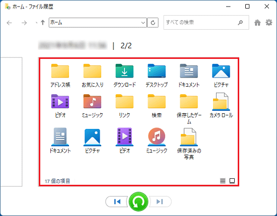 - バックアップした日時ごとに、ファイルやフォルダーが表示されます。