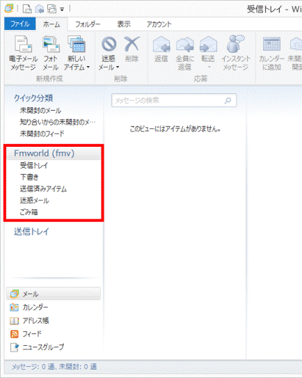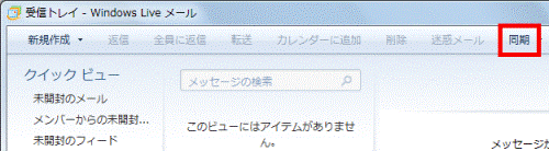 「送受信」ボタンまたは「同期」ボタンをクリックします。