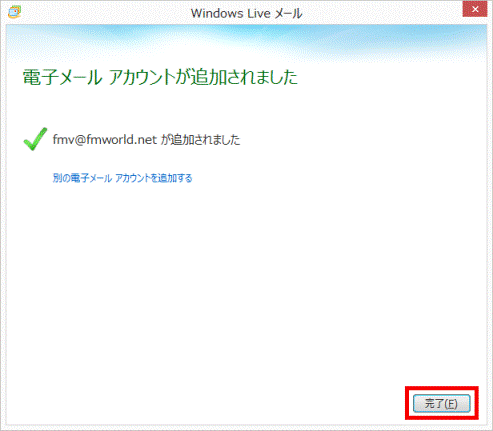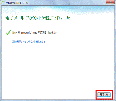 - Windows Live メールが起動して、「自分の電子メールアカウントを追加する」と表示されます。