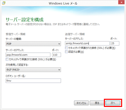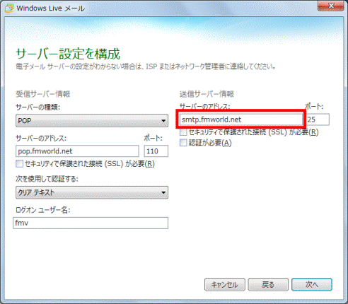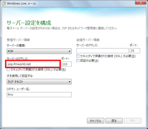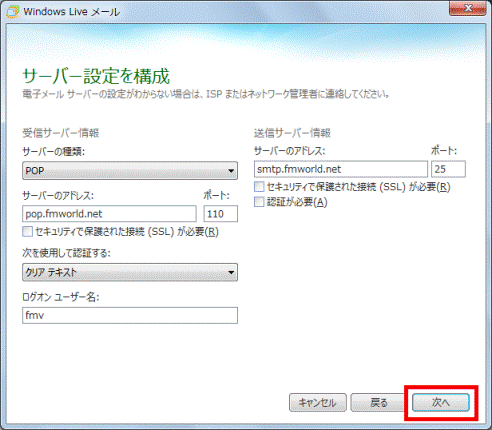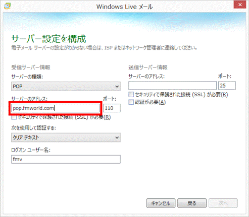 [Windows Live メール] メールを送受信するための設定の方法を教えてください。