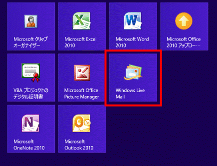 スタート画面に「Windows Live Mail」タイル、または「Windows Live メール」タイルが表示されているときは、タイルをクリックします。 - Windows Live メール 2011の場合