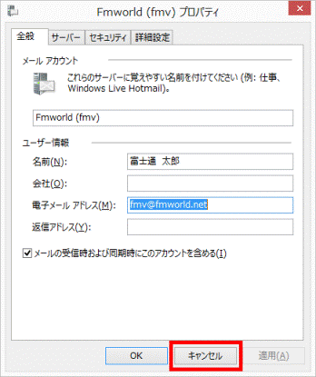「表示名」欄に入力した名前は、メールを送信した相手に、差出人の名前として表示されます。