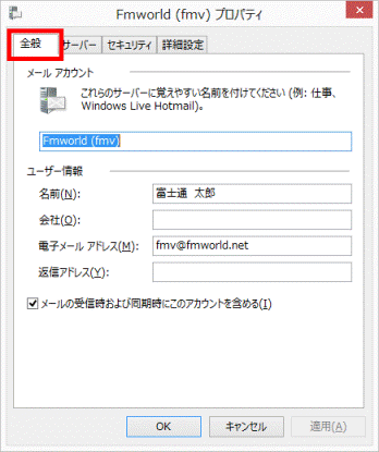 例) fujitsu_taro@azby.fmworld.net - パスワード
