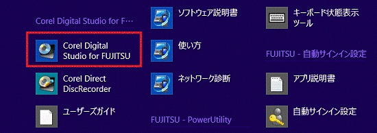 「Corel Digital Studio for FUJITSU」の項目にある「Corel Digital Studio for FUJITSU」をクリックします。