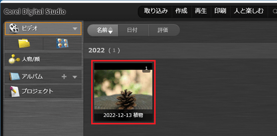 - 編集した動画(プロジェクトファイル)が表示されていることを確認します。