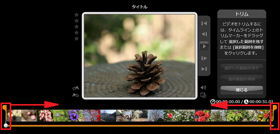 開始点と終了点をそれぞれドラッグし、動画を残す、または削除する範囲まで移動します。