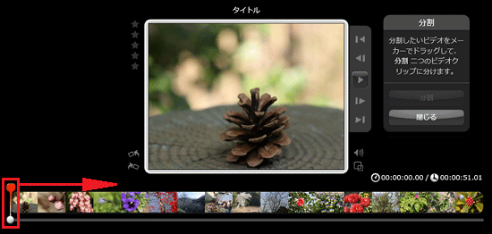 分割点をドラッグし、動画を分割する位置まで移動します。