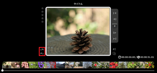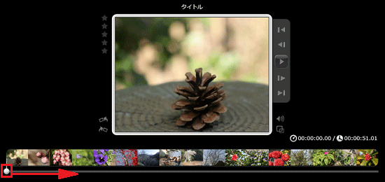 - 白い丸をドラッグし、静止画として保存する場面まで移動します。