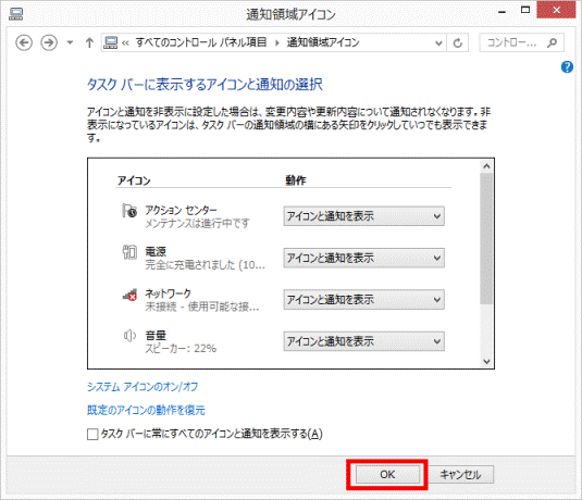 [Windows 8.1/8] 通知領域に音量のアイコンを表示する方法を教えてください。