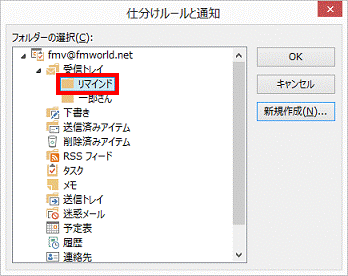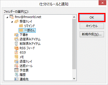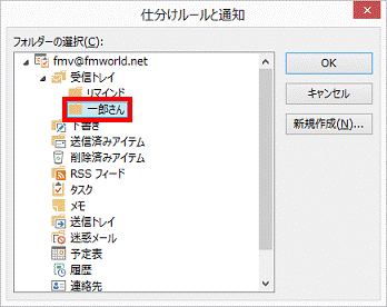 - 振り分け先のフォルダーを作成していない場合は、「新規作成」ボタンをクリックし、表示される画面にしたがってフォルダーを作成します。