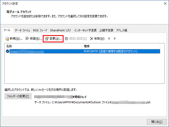 - 「変更」ボタンをクリックします。