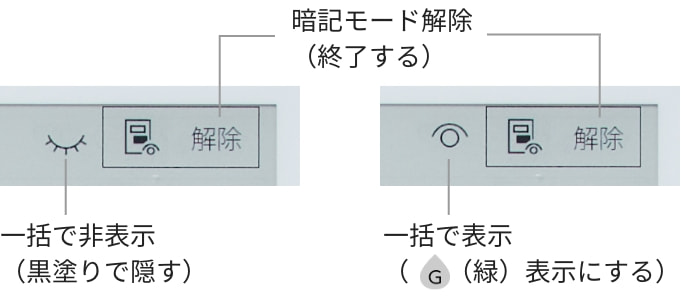 マーカー/ハイライトの(緑)でなぞった箇所が黒くマスクされ、暗記学習ができます。