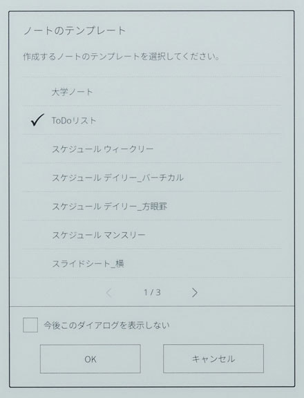 新規にノートを作成します。初期設定時、19種類のテンプレートから選択できます