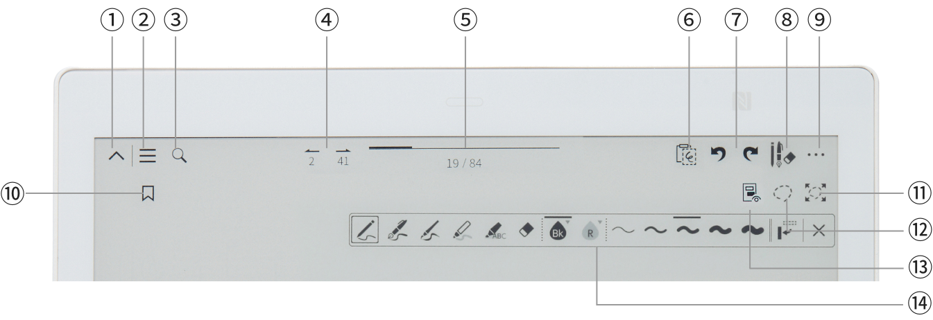 手書き、ハイライトなどの操作を、やり直す、元に戻すことができます