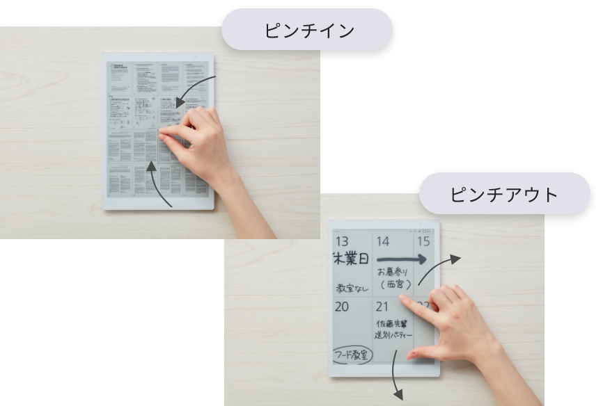 ページめくりや拡大・縮小などの各種操作は、スマートフォンのようにタッチで行うことができます。