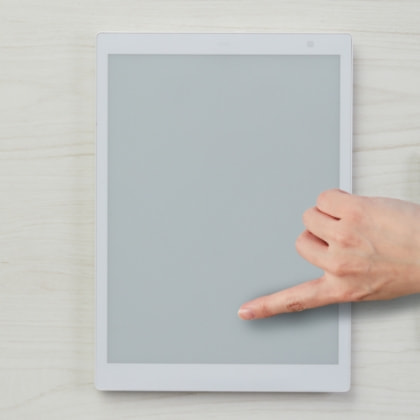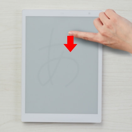 ドキュメント表示中に、うっすらと画面に残像が残った場合、スワイプすることで画面をリフレッシュして残像を消すことができます。ページめくりの方向に対して垂直にスワイプすると、画面が一瞬白黒反転した後に、残像が消えます。