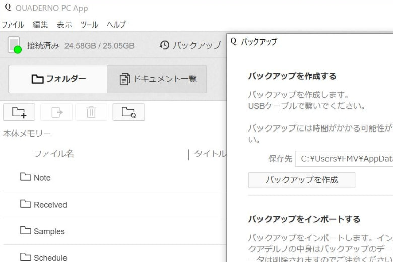 PC用アプリケーション「QUADERNO PC App」にバックアップ機能を追加