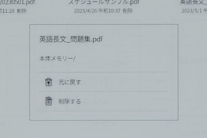 「ごみ箱」内の各ドキュメントは「元に戻す」「削除する」が選べます。