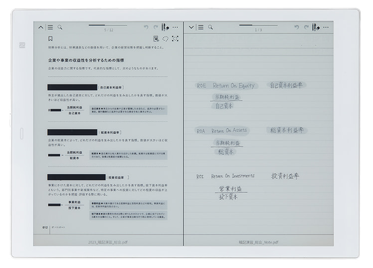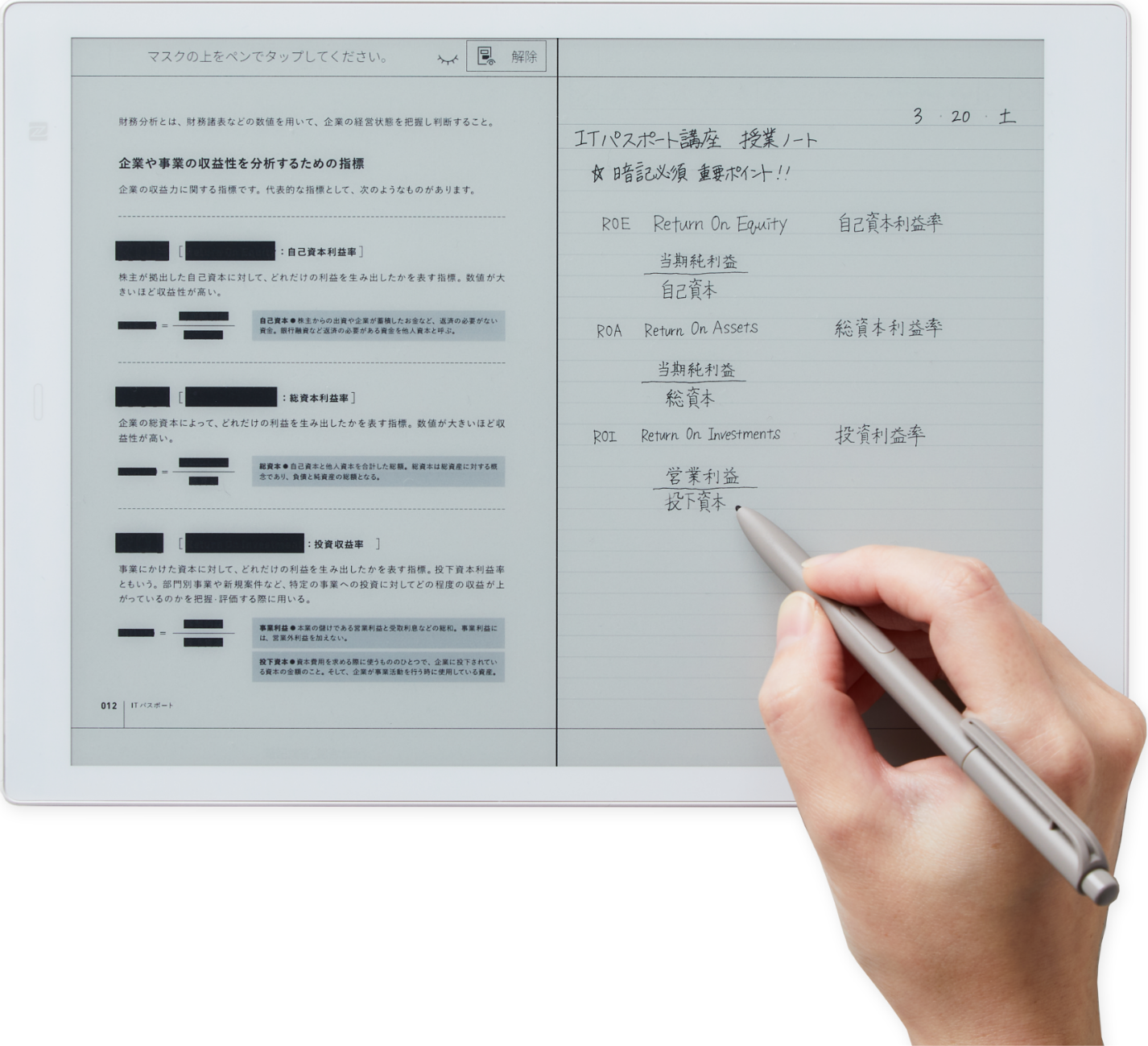 「ドキュメントを並べて表示」で「暗記モード」が使えるようになりました。教科書とノートなど2つの異なるドキュメントを並べたり、暗記したい箇所を隠しながら書いて覚えるといった使い方もできます。