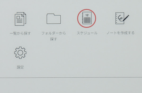 ③「クアデルノ」本体ホームボタンを押し、ホームメニューの[スケジュール]ボタンをタップ。パソコンで登録した「スケジュール」テンプレートを使うことができます。