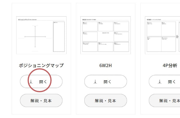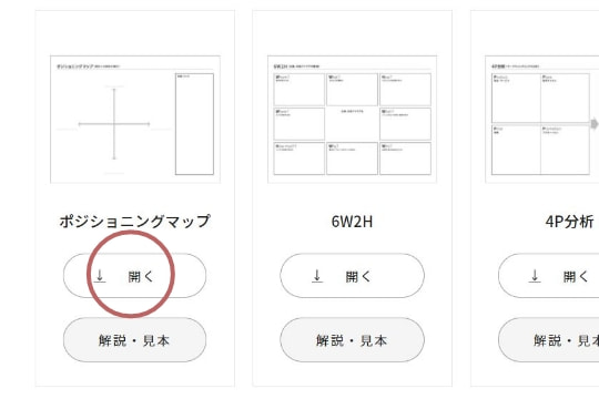 新規事業開発や既存事業の見直しで活用できる、ビジネスに役立つフレームワークのテンプレートを用意しました。