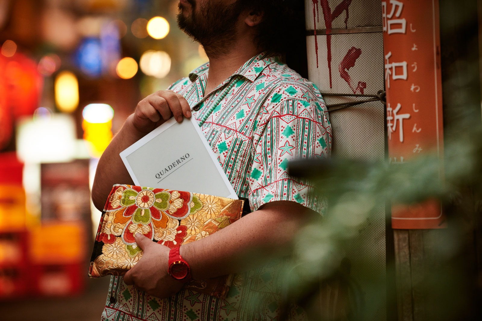 「ビジネスで初対面の相手と会うときは、鞄を持っていくことが重要です。手持ちの鞄のなかでも特に気に入っているのが、この『COET』というショップのクラッチバッグなんですが、このサイズではノートPCは入らない。一方『クアデルノ』なら入ります。鞄の中に、煙草、名刺、『クアデルノ』が入っていれば、大抵の現場は乗り切れるんじゃないでしょうか」