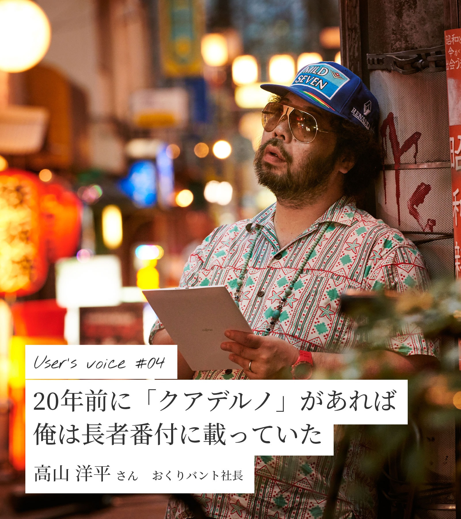 「メモ帳に書いたアイデアや企画の草案は、もしかすると100万円、1,000万円にも化ける代物だったかもしれません。だけど、安価なメモ帳は、つい扱いがぞんざいになり、どこかに置き忘れてきてしまうことが多かったんです。その点『クアデルノ』は決して安価ではない。緊張感を保ちながら持ち歩くので、なくさずに済むのです。もし20年前に『クアデルノ』があったなら、俺は長者番付に名前が載っていたかもしれないですね」