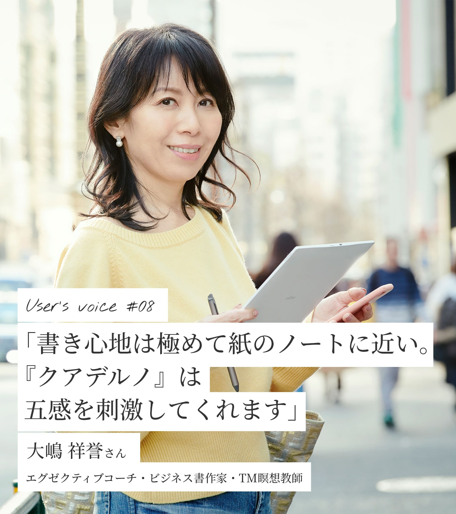 複数のノートを使い分けるように、「クアデルノ」の持つ機能やメリットを目的に合わせて使い分け、様々な活用法を実践、提示してくれた大嶋さんにとって「クアデルノ」とは――。
