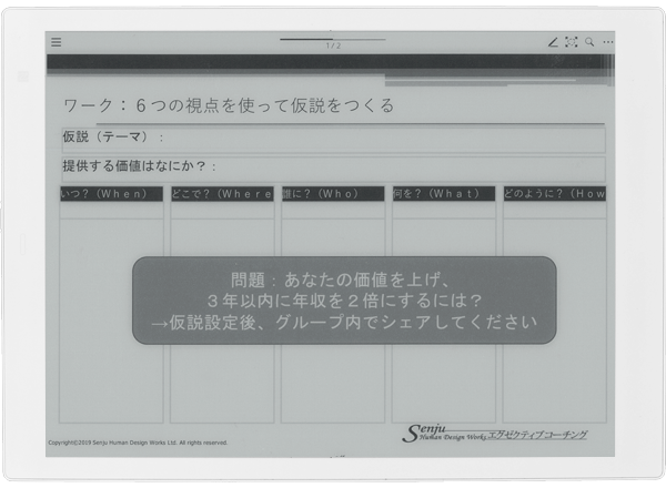 「普段、企業の経営者や役員、幹部に向けた、エグゼクティブ研修やコーチングを行っているのですが、そのときにチャレンジしたいのは、参加者全員に『クアデルノ』を配布すること。いまは紙ベースで研修を行っていますが、『クアデルノ』ベースに変えればデータの回収作業がかなりラクになると思います」