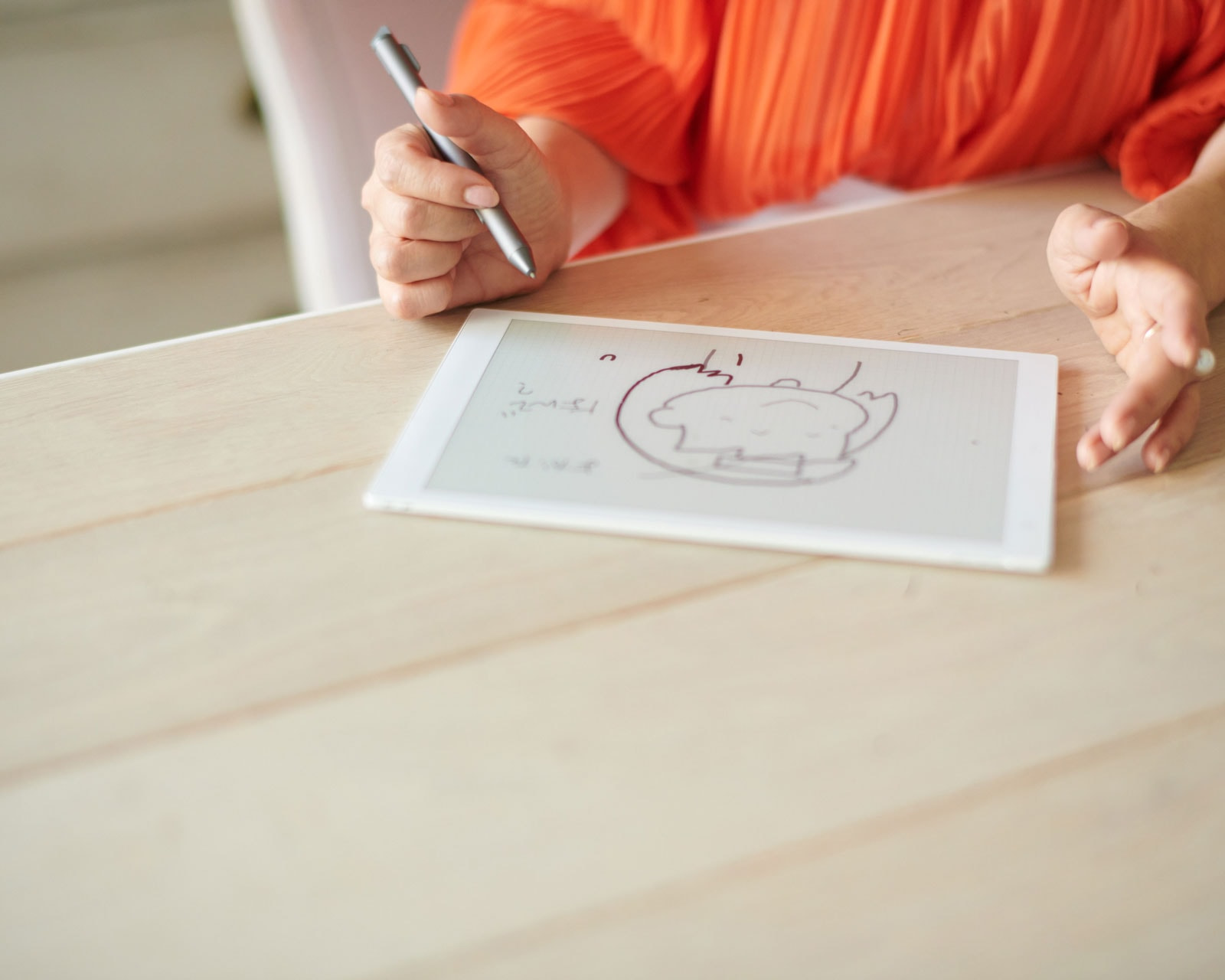 「ノートパソコンを持ち歩いてはいますが、アナログ脳のせいかキーボードでメモを取るのは苦手。“手で書く派”なんです。『クアデルノ』はデジタルツールでありながら、そんなアナログ派の私とも親和性が高いのが魅力。本物の紙に書いているかのような書き心地で快適に使えます。