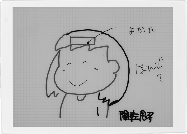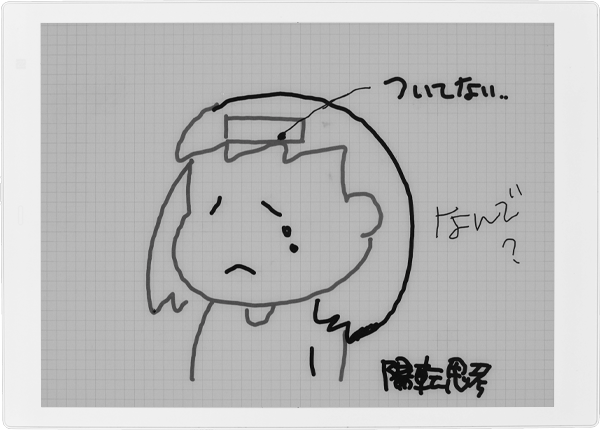 ↑オンラインセミナーで「陽転思考」を説明する際に使用したイラスト。これまではスケッチブックに書いていたが、クアデルノにすることで「顔の表情だけを消す→書き換える」が可能になった。「スケッチブックの消費があまりに早かったので助かりました(笑)。オンラインセミナーが時代の主流になっても、アナログの良さはうまく盛り込んできいきたいですね」(和田さん)