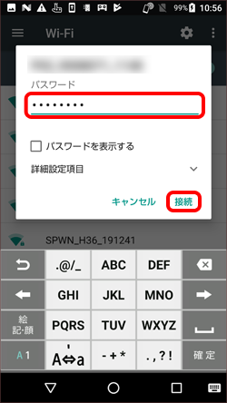 - 1でクアデルノに表示された「SSID:」と同じアクセスポイントを選択します。