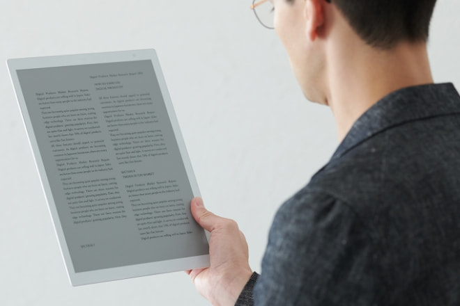 「クアデルノ」は、表示しているだけではバッテリーを消費しにくいので、電池が長くもちます。論文、学術書などの長い文書の閲読にも最適です。