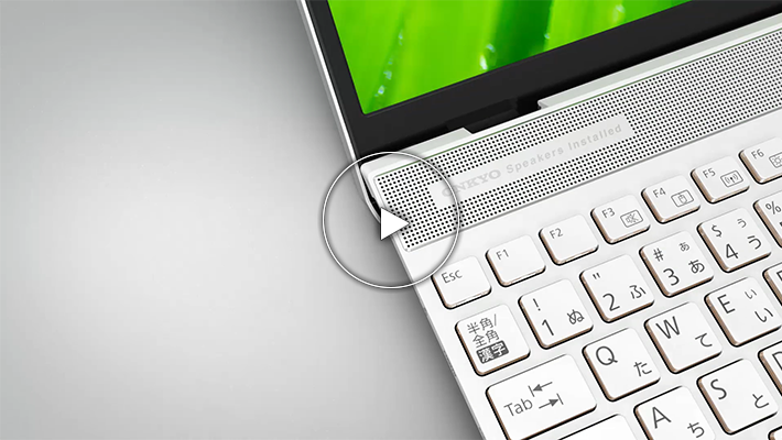 コンテンツに集中できるノイズの無い画面周囲の処理、一段とコンパクトになった端末に、その幅いっぱいまで凝縮されたフルサイズキーボード、充実のI/O 類、ダイヤモンドカットがキラリと輝くアルミスピーカー等、毎日快適にお使いいただくための確かな使い勝手と美しさを備えたノートパソコンです。