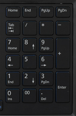 縦4列のテンキー付キーボードを採用。 「0」キーの隣に「00」キー、左上段に「Tab」キーも搭載し、表計算など数字入力が多い作業も快適にこなせます。