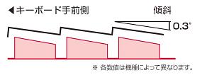 デザイン性に優れたアイソレーションキーボードに加え、各キーを液晶側に向かって傾斜させ、階段形状の段差を持たせているので、キー列を間違えず正確なタッチタイピングができます。