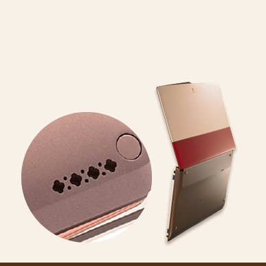 - 電源ボタンとステータスLEDは透明感のあるビジューをあしらいました。