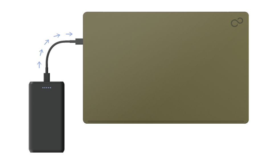 (注2)7.5W(5V/1.5A)以上を供給可能なUSB Power Delivery対応機器であれば、本体に充電できます。パソコンを使用しながら本体に充電する場合は、65W(20V/3.25A)以上供給可能なものが必要です。ただし、すべての対応機器の動作を保証するものではありません。