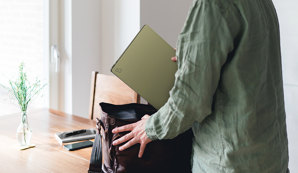 モバイルノートPCはもはや単なるデジタルツールの域を越え、日常に溶け込んだその道具はインテリアや自らのファッションアイテムの一部となります。ノイズを極力そぎ落とし、どんな環境にも収まるシンプルなジオメトリーフォルム。触感にまで細やかに配慮した金属の質感。拘りの家具や服にさりげなく馴染みながらも少しアクセントを加えるニュアンスを含んだカラーバリエーション。洗練されたディテールはユーザーの生活や身だしなみを上品にします。