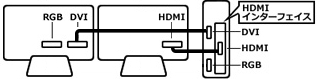 | 「HDMIインターフェース」選択時 * 「HDMIインターフェース」選択時の3台同時表示はサポートしておりません。 * 「HDMIインターフェース」はWD2/Mのみ選択できます。 |