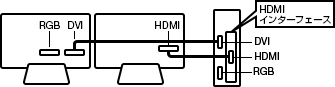 * 3台同時に表示出力する場合は、アナログRGBディスプレイ×1、DVI対応ディスプレイ×1、HDMI対応ディスプレイ×1をご使用ください。