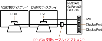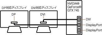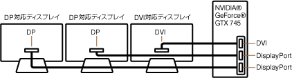 - DP(DisplayPort)出力のデイジーチェーン接続によるマルチディスプレイはサポートしておりません。