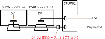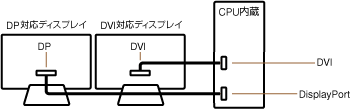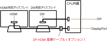 - DP(DisplayPort)出力のデイジーチェーン接続によるマルチディスプレイはサポートしておりません。